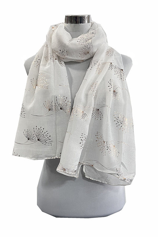 Foiled Rose Gold Dandelion Flower Print Scarf
